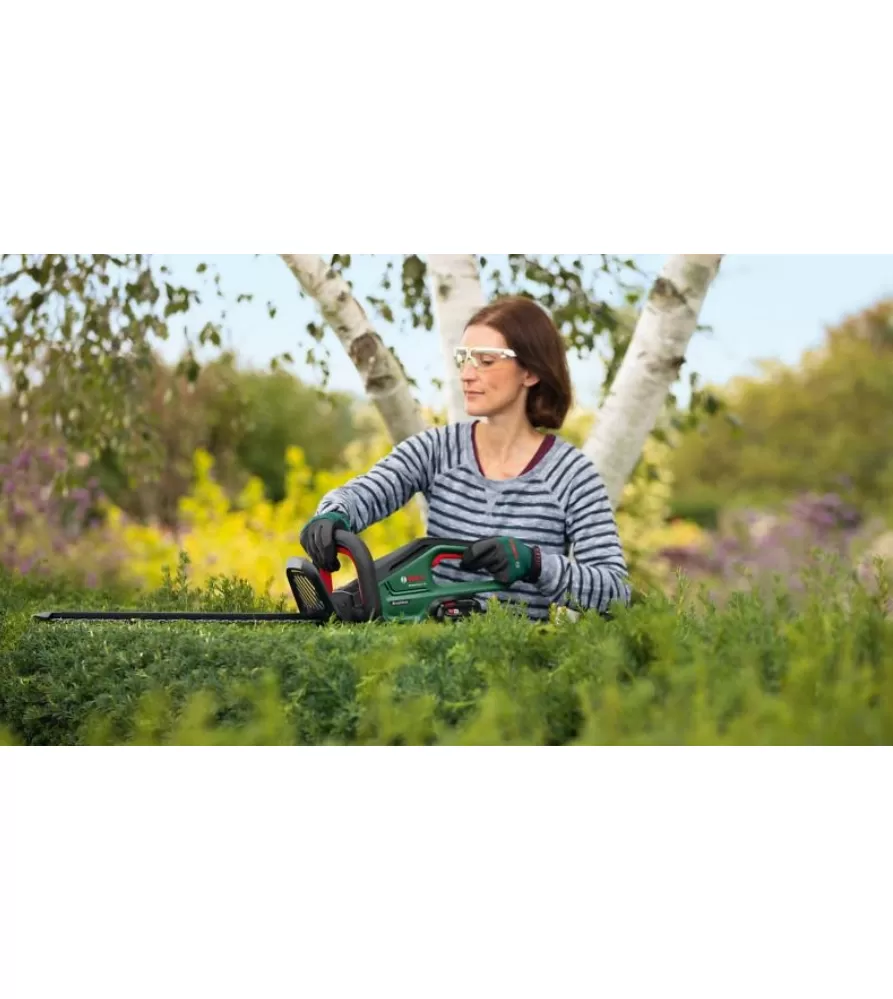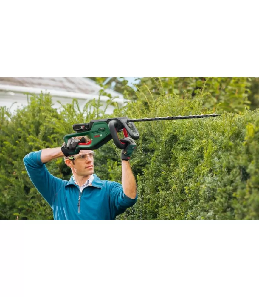 Akumulátorové 18V nůžky na živý plot UniversalHedgeCut 18V-50 od firmy Bosch s bezuhlíkovým motorem zajišťují vysoký výkon, který je zárukou značně delší servisní životnosti. Díky lehké konstrukci je i dlouhodobé stříhání živých plotů příjemnější a méně namáhavé. UniversalHedgeCut 18-50 představuje dokonalou volbu na stříhání středně velkých živých plotů, jako jsou jehličnany, ptačí zob, vavřín či buk, s větvemi o tloušťce až 20 mm. S dobou chodu akumulátoru 75 minut a indikátorem jeho stavu, který umožňuje snadnou kontrolu stavu akumulátoru při práci, se značně snižuje riziko, že nečekaně dojde energie. Jejich švýcarský přesný nůž zaručuje ostré vysoce kvalitní řezy pro optimální výkonnost a trvanlivost. Toto nářadí patří do POWER FOR ALL ALLIANCE. Jeden akumulátor může pohánět širokou škálu nářadí různých značek