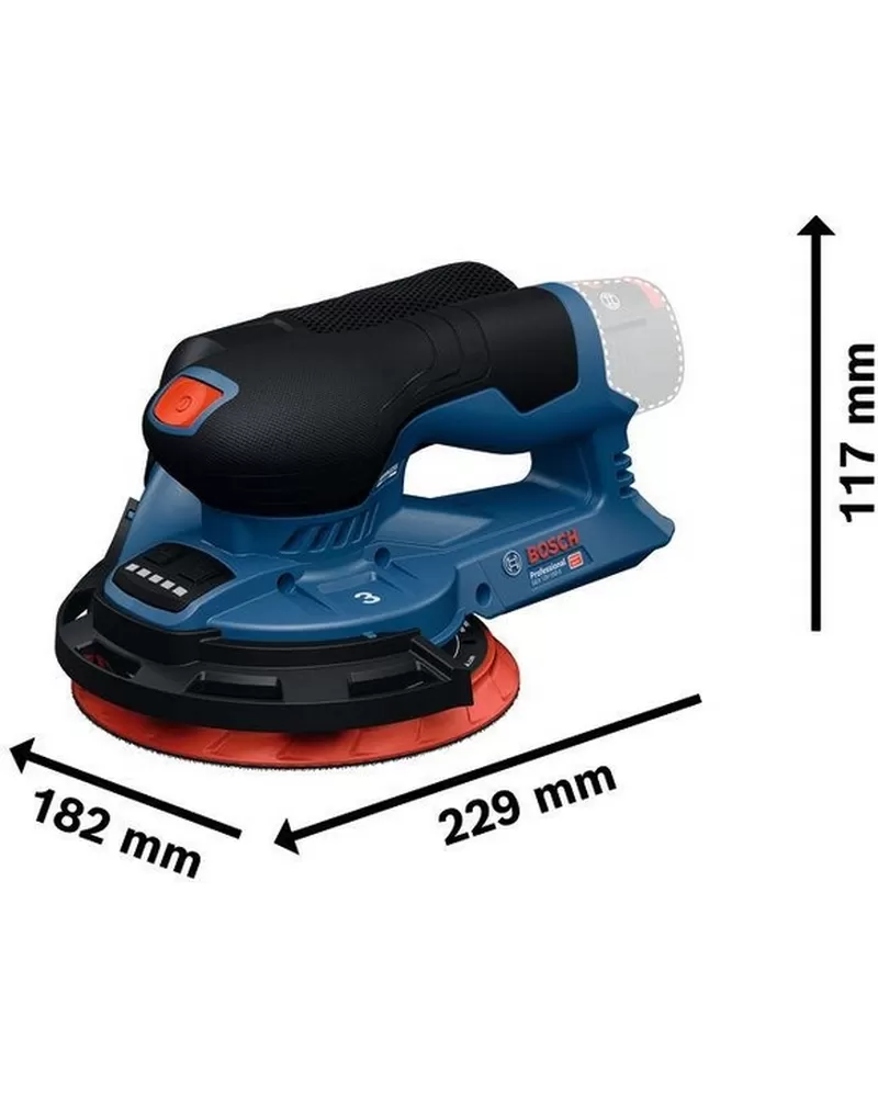 Excentrická bruska GEX 12V-150-3 Professional s nízkou konstrukcí nářadí, blízko obrobku, nabízí optimální kontrolu. Dobře vyvážená ergonomie a kompaktnost usnadňují použití jednou nebo oběma rukama. Bezuhlíkový motor a zdvih 3 mm zajišťují rychlý postup práce a vysokou kvalitu povrchu. Integrované Venturiho vzduchové kanály a integrovaný ventilátor umožňují vynikající odsávání prachu. Nářadí můžete ovládat intuitivně díky jednoduchému rozhraní člověk-stroj. Sáček na prach zajišťuje efektivní zachycování prachu.