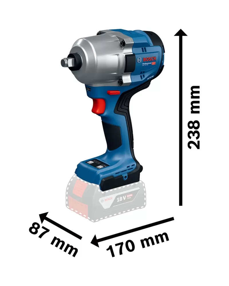 GDS 18V-780 Professional má robustní 1/2palcový držák nástrojů s přídavným ochranným kroužkem, vysoký krouticí moment, více režimů pro různé aplikace, výkonný bezuhlíkový motor, krátkou hlavu a kompaktní, lehkou konstrukci
