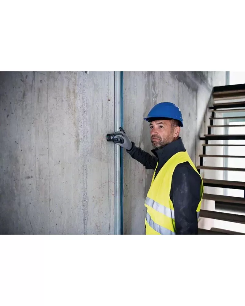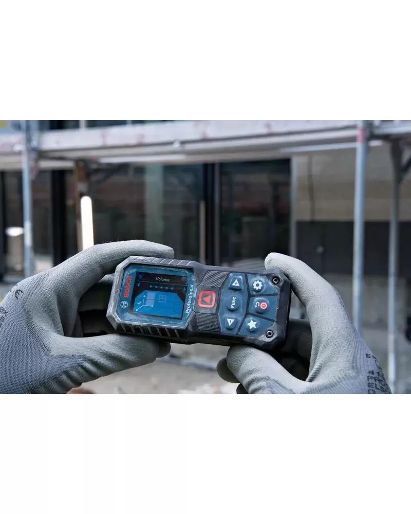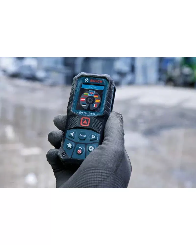 GLM 50-22 Professional odolá náročným podmienkam na stavenisku. Konštrukcia so stupňom krytia IP 65 poskytuje úplnú ochranu pred prachovými časticami a striekajúcou vodou. Kryt tlmiaci nárazy poskytuje ochranu pri páde z výšky 1,5 m aj na tvrdom betóne. Pomocou prispôsobiteľného tlačidla môžete definovať svoje obľúbené funkcie merania alebo nastavenia. Intuitívne používateľské rozhranie podporuje 30 jazykov a pozostáva z farebného displeja a režimu veľkých čísel pre lepšiu čitateľnosť. Pre bezproblémové používanie je vybavený novou funkciou pomocníka, ktorá zobrazuje všetky možnosti merania.