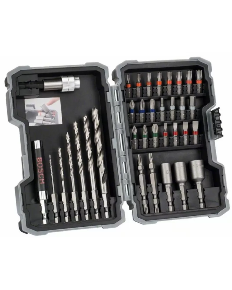 35dílná sada vrtáků a šroubovacích bitů dřevo Bosch 2607017327 Výrobní řada Příslušenství PRO Specifikace PH1; PH2; PH3; PZ1; PZ2; PZ3; SL3;… Celý popis