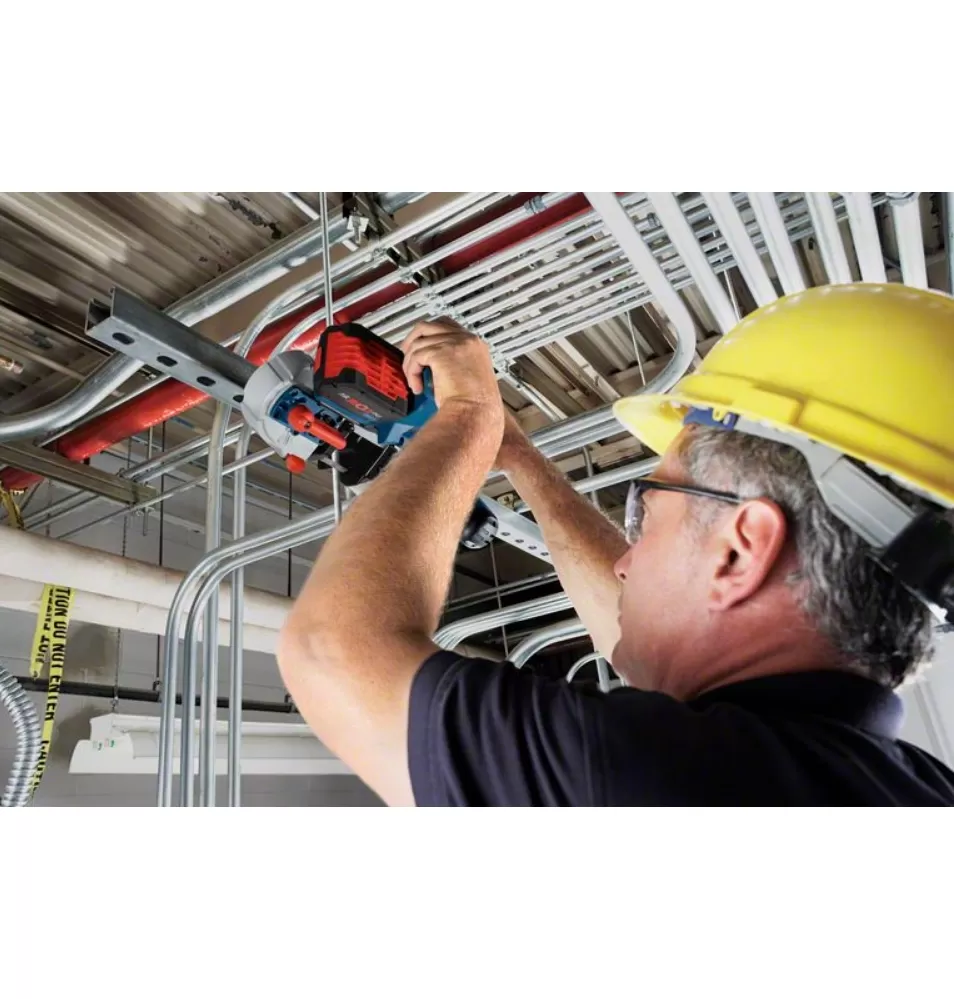 • Najergonomickejšia a najkompaktnejšia akumulátorová 18V pásová píla Bosch pre pohodlnú prácu