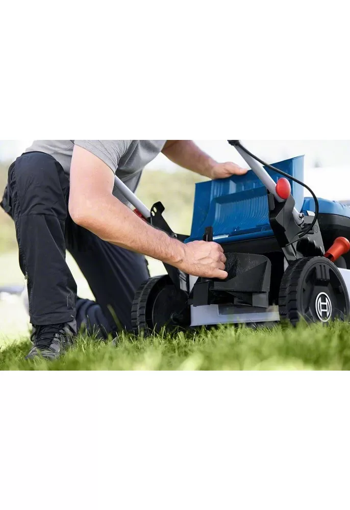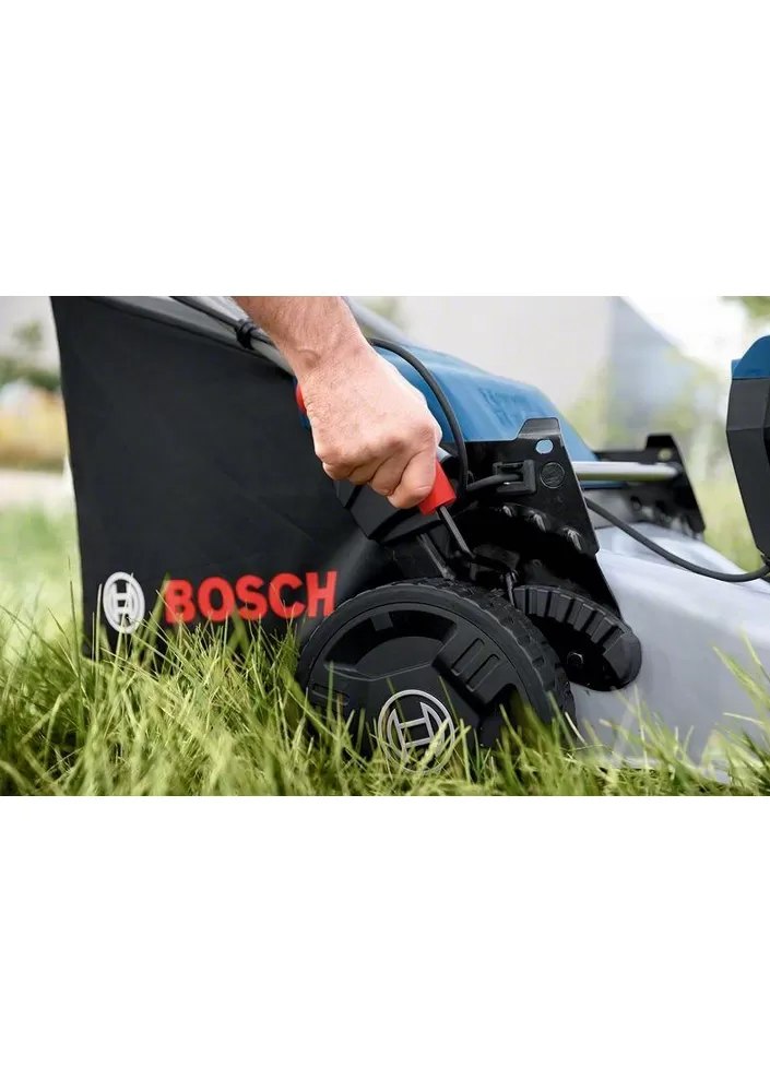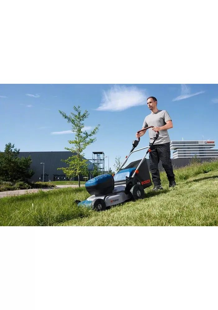 • Vysoké pohodlí díky průměru sečení 46 cm, snadnému dvoustupňovému nastavení výšky a skládací rukojeti pro prostorově úsporné vertikální ukládání
