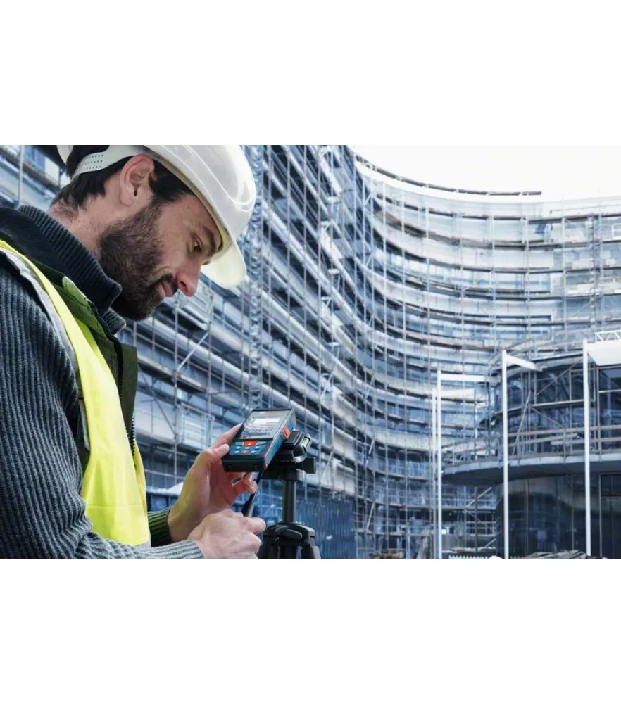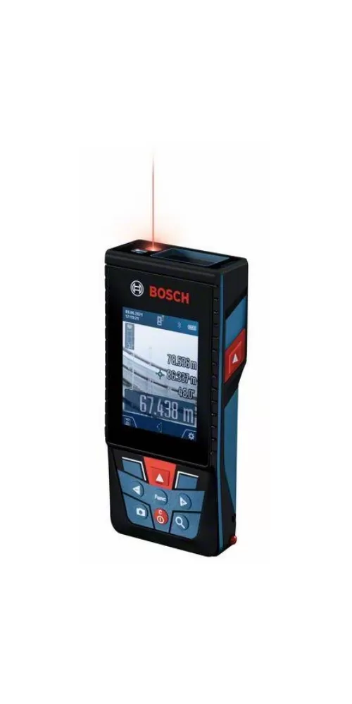 • Tento robustní laserový dálkoměr do exteriéru je vybaven digitálním hledáčkem s funkcí přiblížení pro přesné měření vzdálenosti až do 150 m. Naměřené hodnoty a snímky se automaticky ukládají a lze si je snadno prohlížet na velkém 2,8" barevném displeji s vysokým rozlišením, který umožňuje volbu mezi svislou nebo vodorovnou orientací. Pro pohodlnou dokumentaci lze všechna data přenášet přes Bluetooth do aplikace Bosch MeasureOn nebo přes USB do stolního počítače. Tento laserový dálkoměr s krytím IP54, sklem odolným proti poškrábání a uživatelsky přívětivým rozhraním je praktický všestranný pomocník na náročná pracoviště.