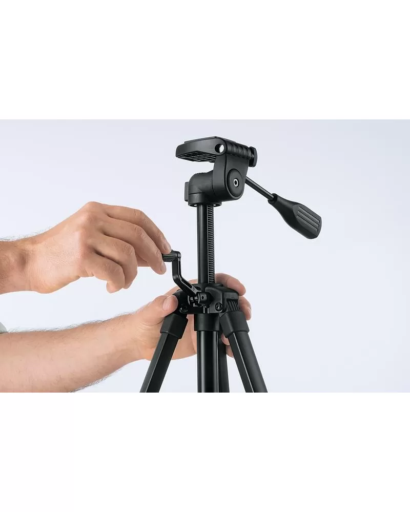 Výšku lze nastavit v rozmezí 55 až 157 cm. Funkčnost a přesnost díky krabicové libele. 1/4" stativový závit.