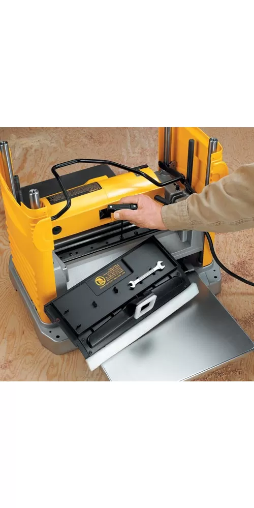 Tloušťkovací fréza DeWALT DW733 Zajištění řezné hlavy udržuje hlavu na svém místě, eliminuje jakékoliv pohyby pracovních nástrojů a zajišťuje… Celý popis