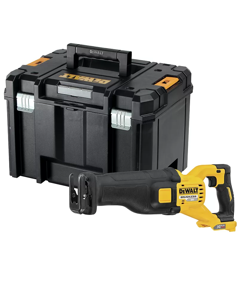Aku mečová pila 54V bez aku DeWALT DCS389NT s vysokým výkonem, kapacitou řezů až 300mm a upínáním listu ve dvou polohách.
