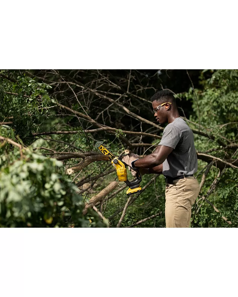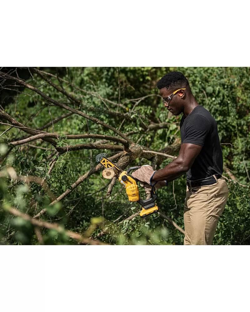 • Lehká a kompaktní akumulátorová prořezávací řetězová pila, která je součástí systému 18V XR, je vybavena vysoce účinným bezuhlíkovým motorem, jehož konstrukce maximalizuje dobu chodu, která odpovídá až 70 řezům na jedno nabití*, i životnost motoru.