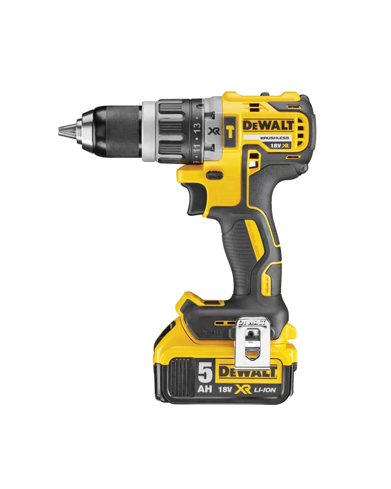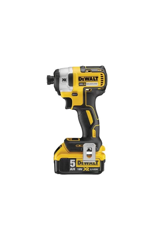 Kombo sada 18 V DeWALT DCK266P2 obsahující bezuhlíkovou přípklepovou vrtačku DCD796, bezuhlíkový rázový utahovák DCF887, dva akumulátory 5,0 Ah a kufr.