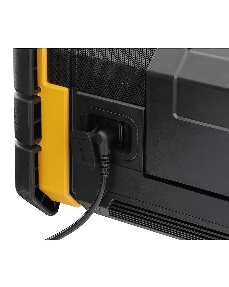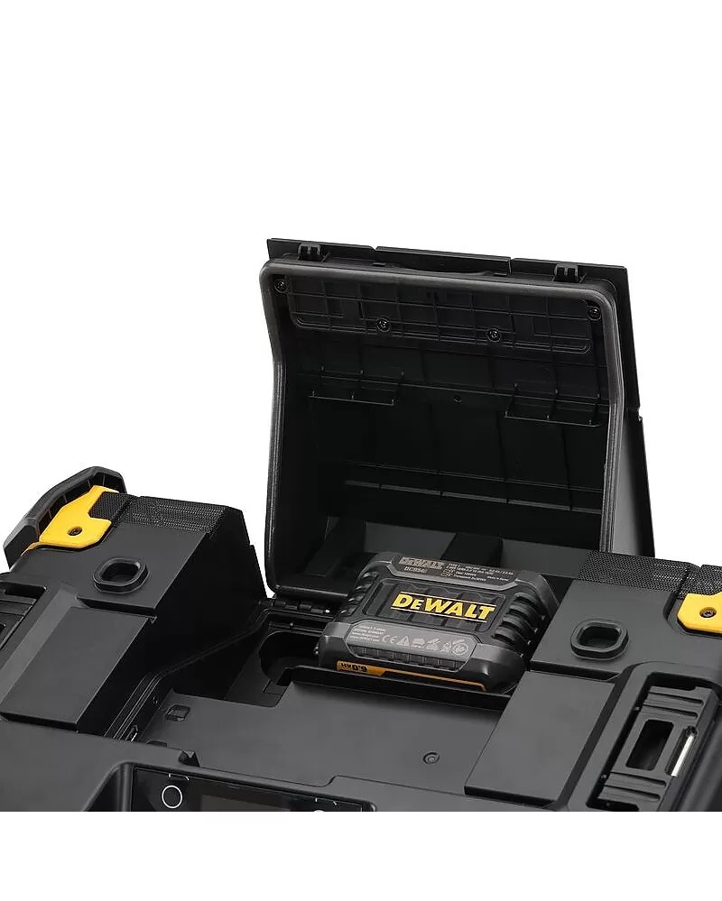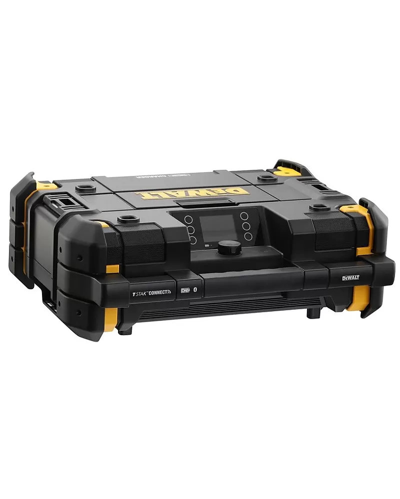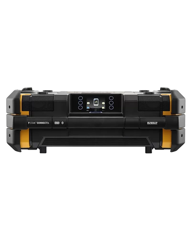 Rádio s nabíječkou TSTAK DeWALT DWST1-81078 vybavené šesti reproduktory barevným otočným displejem a třídou ochrany IP54.
