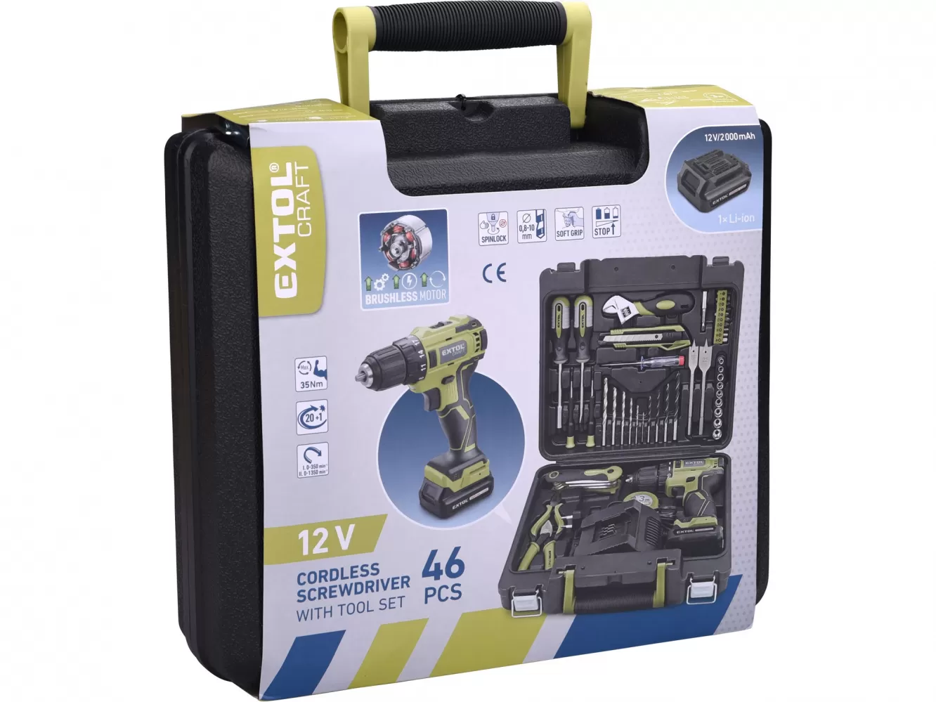 Aku vrtací šroubovák 12V 1x2,0Ah BRUSHLESS s nářadím EXTOL CRAFT 422801
