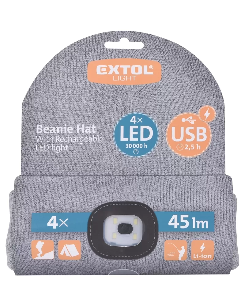 Čiapka s čelovkou, univerzálna veľkosť - USB nabíjanie EXTOL LIGHT 43462 Jednoduché nabíjanie cez USB Svetlo sa dá ľahko vybrať a viečko umyť Jedna veľkosť pre všetkých 100 % akryl 4x45 lm LED Li-ion 300 mAh 3 režimy osvetlenia: 100 % –...