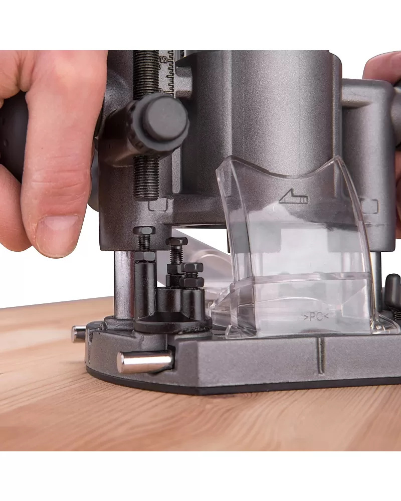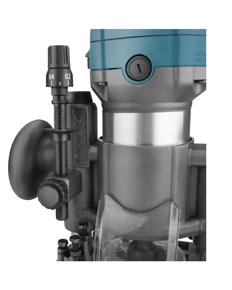 • Srdcem frézky je silný 710W motor s regulací otáček v rozsahu 13000-33000/min, který umožňuje přizpůsobit rychlost typu materiálu