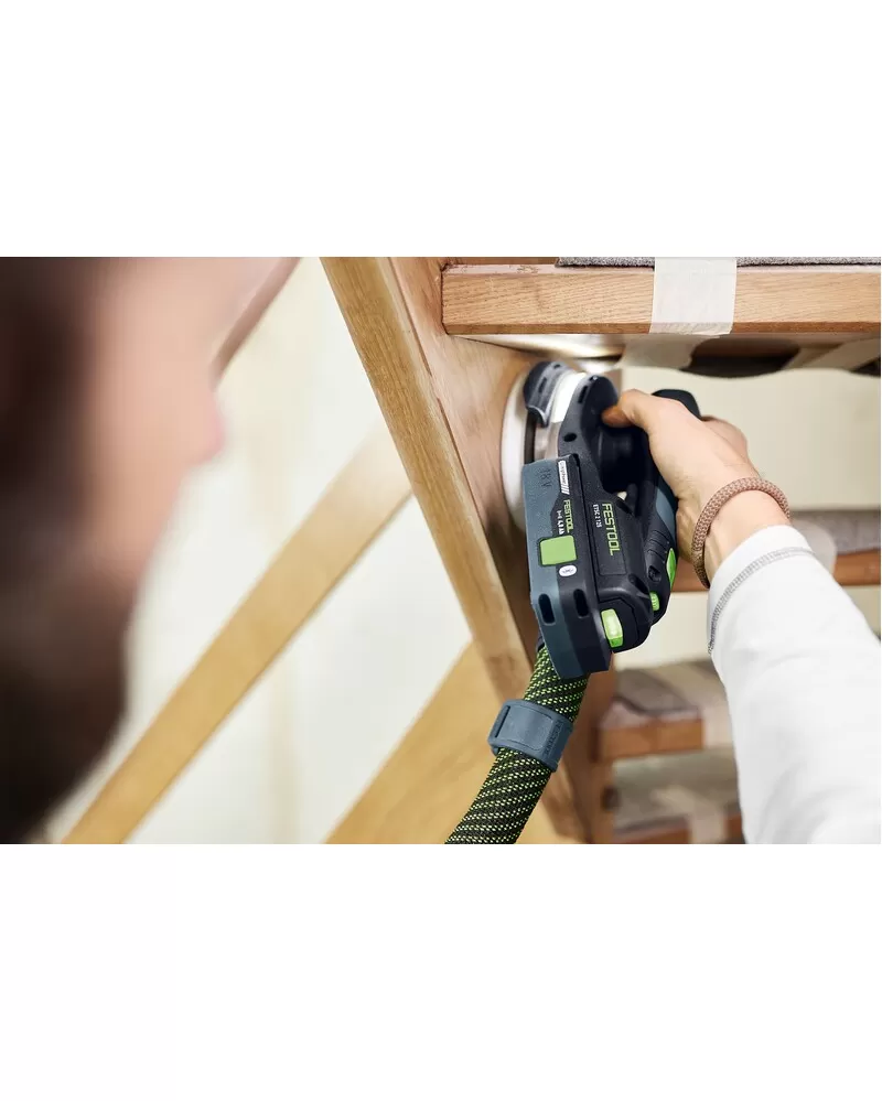 Bez ohledu na to, zda pracujete v dílně, nebo na špatně přístupném místě, akumulátorová excentrická bruska ETSC 2 vám poskytuje maximálně neomezený pohyb při broušení. Integrovaný LED světelný kroužek zlepšuje výhled na povrch a odhalí nerovnosti už během broušení. Excentrický brusný pohyb přitom dosahuje vynikající kvality povrchu, bez jakýchkoli drahých dodělávek. Výkonný akumulátor 4,0 Ah zabezpečuje rychlý postup práce a je kompatibilní s 18V akumulátorovým nářadím a nabíječkami. Díky malé konstrukční výšce padne bruska do ruky jako ulitá – pro pohodlné broušení, ať na rovině, nebo nad hlavou.
