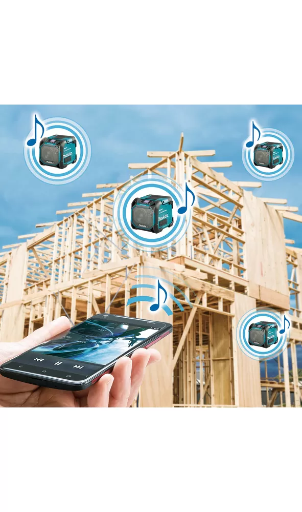 Aku přehrávač s Bluetooth 10,8V-18V bez aku Makita DMR203, který pracuje s Li-ion akumulátory 10,8V /12V (CXT),14,4V a 18V nebo na síťový adaptér