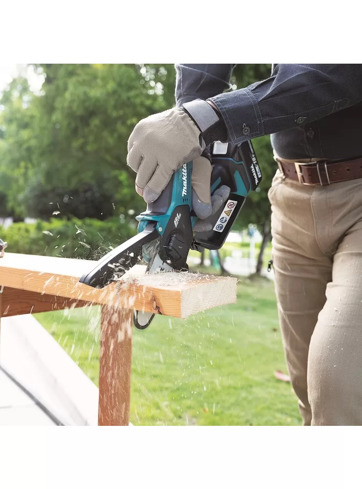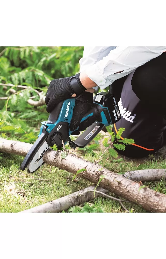 • Lehká a kompaktní prořezávací pila s lištou 100mm fungující na akumulátory Li-ion 18V