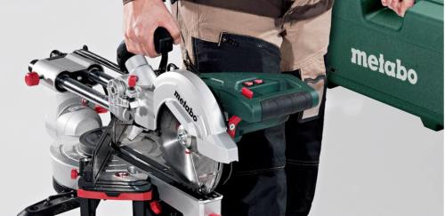 Kapovací a pokosová pila Metabo KGS 305 M s enormním řezným výkonem díky extrémně výkonnému univerzálnímu motoru a velkému pilovému kotouči.