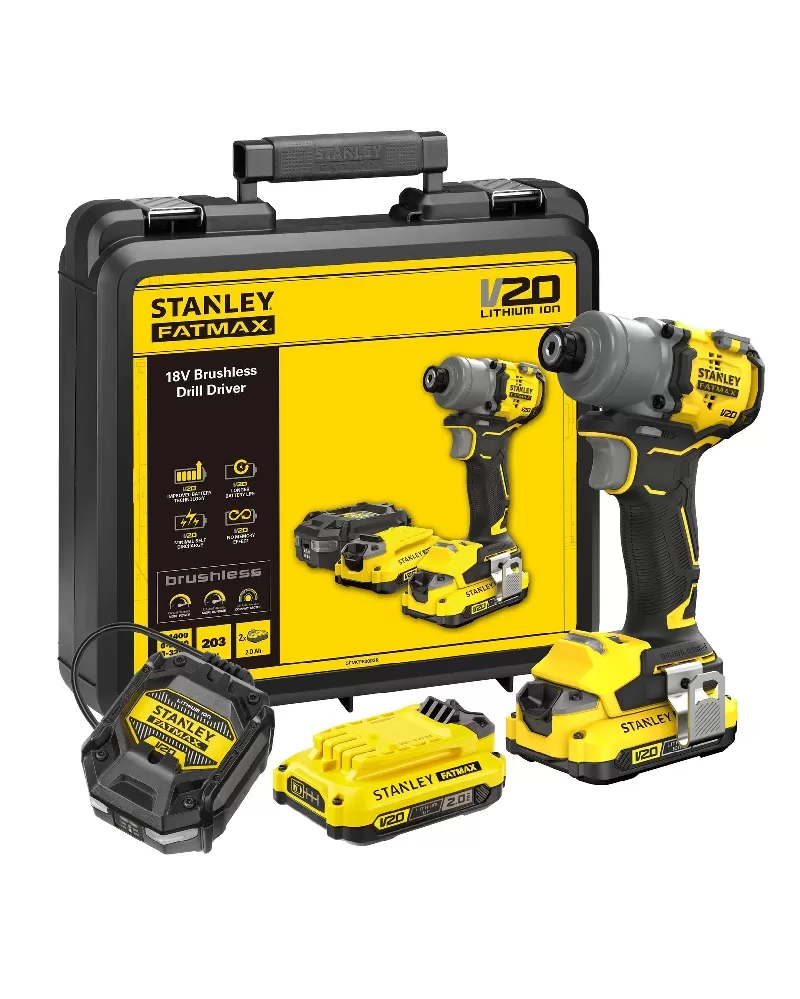 Aku bezuhlíkový rázový utahovák V20 18V 2x2,0Ah Stanley FatMax SFMCF830D2K