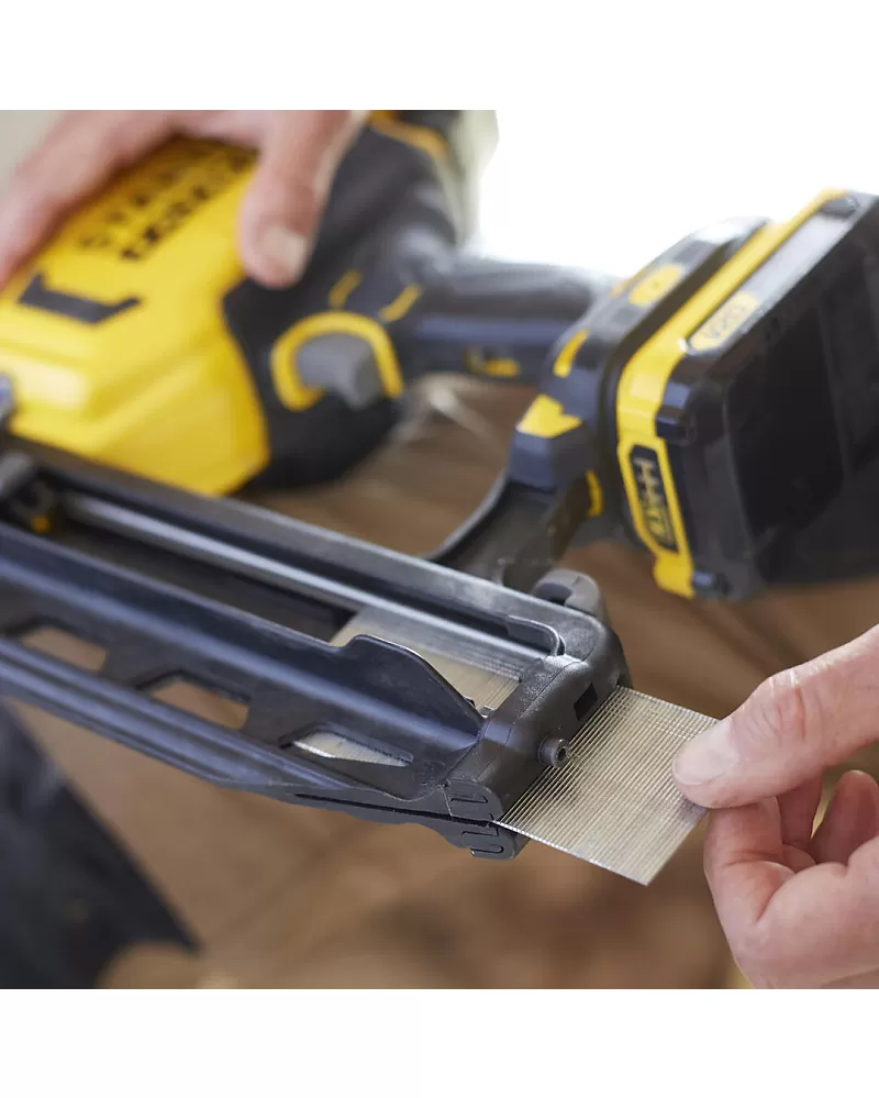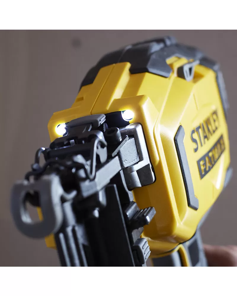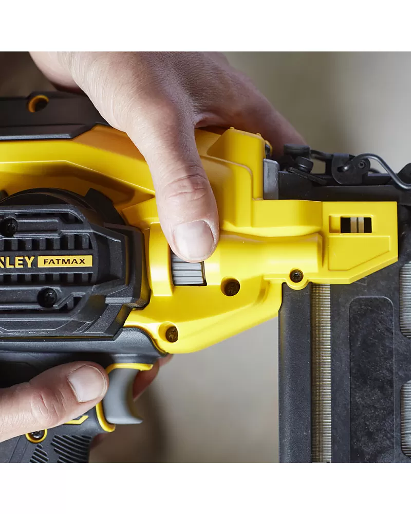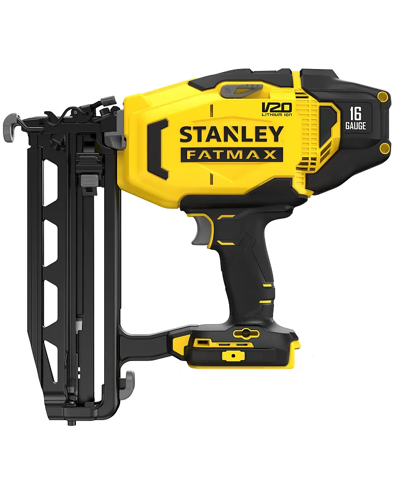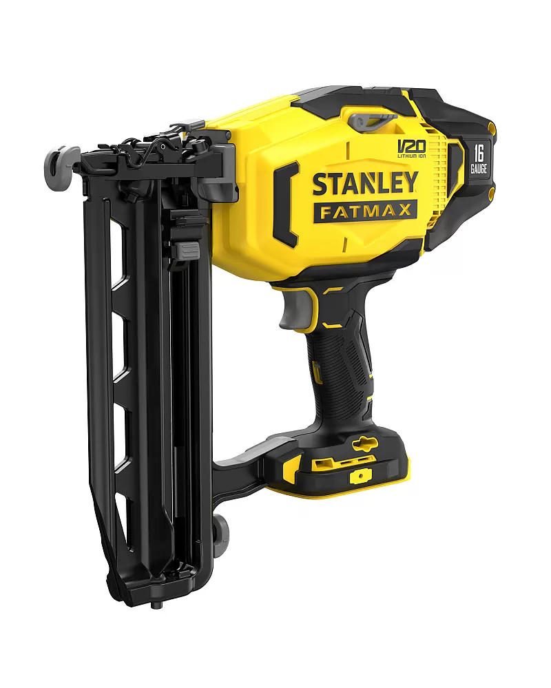 Aku hřebíkovačka V20 bez aku Stanley FatMax SFMCN616B s energií rázu 60 J pro nastřelování hřebíků délky až 64 mm.