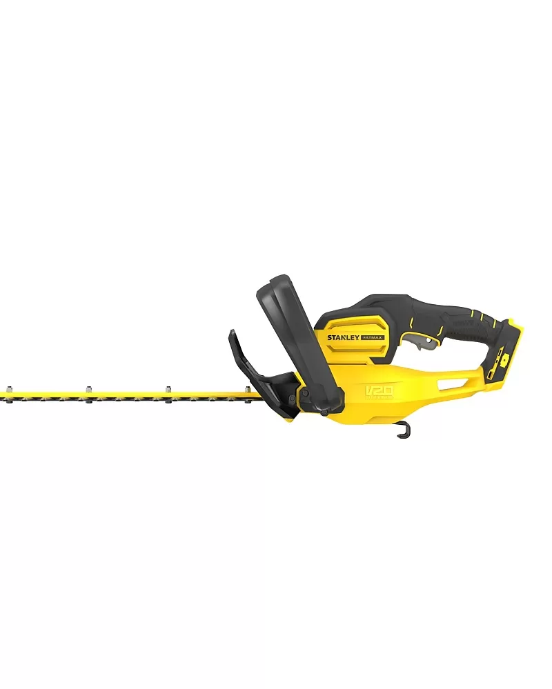 Aku nůžky na živý plot V20 1x4,0Ah Stanley FatMax SFMCHT855M1 s lištou délky 55cm a pilkou na prořezávaní silnějších větviček.