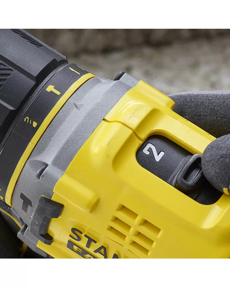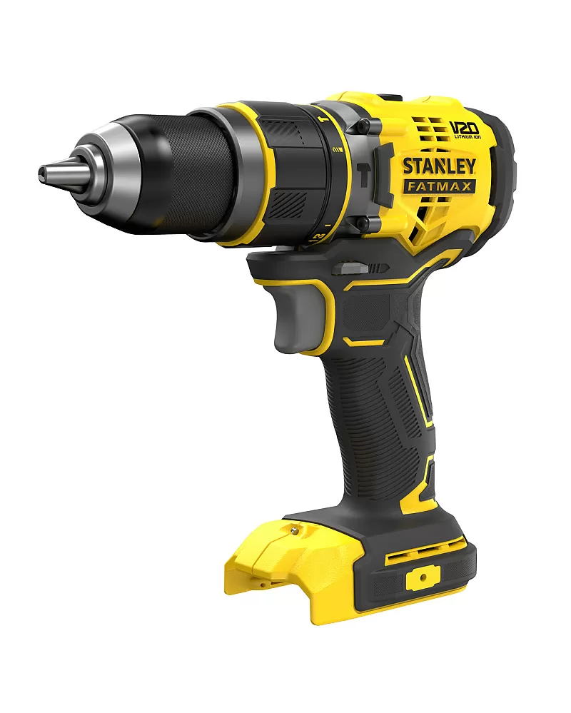 Aku příklepová vrtačka V20 bez aku Stanley FatMax SFMCD721B s dvourychlostní převodovkou krouticím momentem 80Nm pro vrtání do zdiva, kovu, dřeva i plastu.