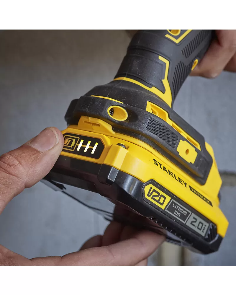 Akumulátor V20 18V 2,0Ah Stanley FatMax SFMCB202 Součást nového 18V akumulátorového systému STANLEY® FATMAX® V20, napájejte všechno nářadí V20 společným novým a vylepšeným 18V lithium-iontovým akumulátorem Díky vylepšené technologii...