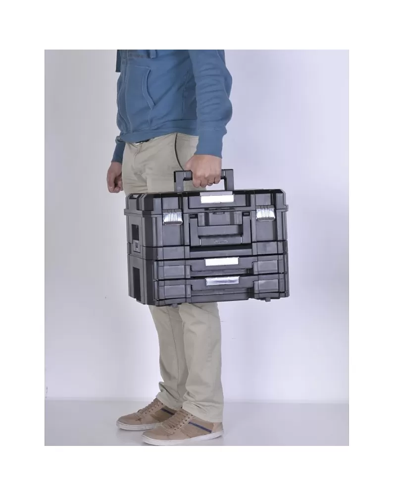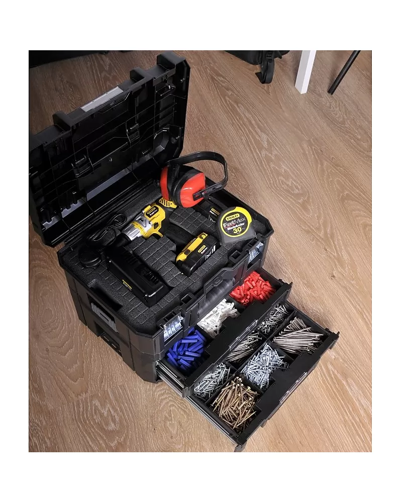 Combo box TSTAK COMBO Stanley FMST1-71981 so systémom jednoduchého prepojenia s ostatnými kuframi série TSTAK.