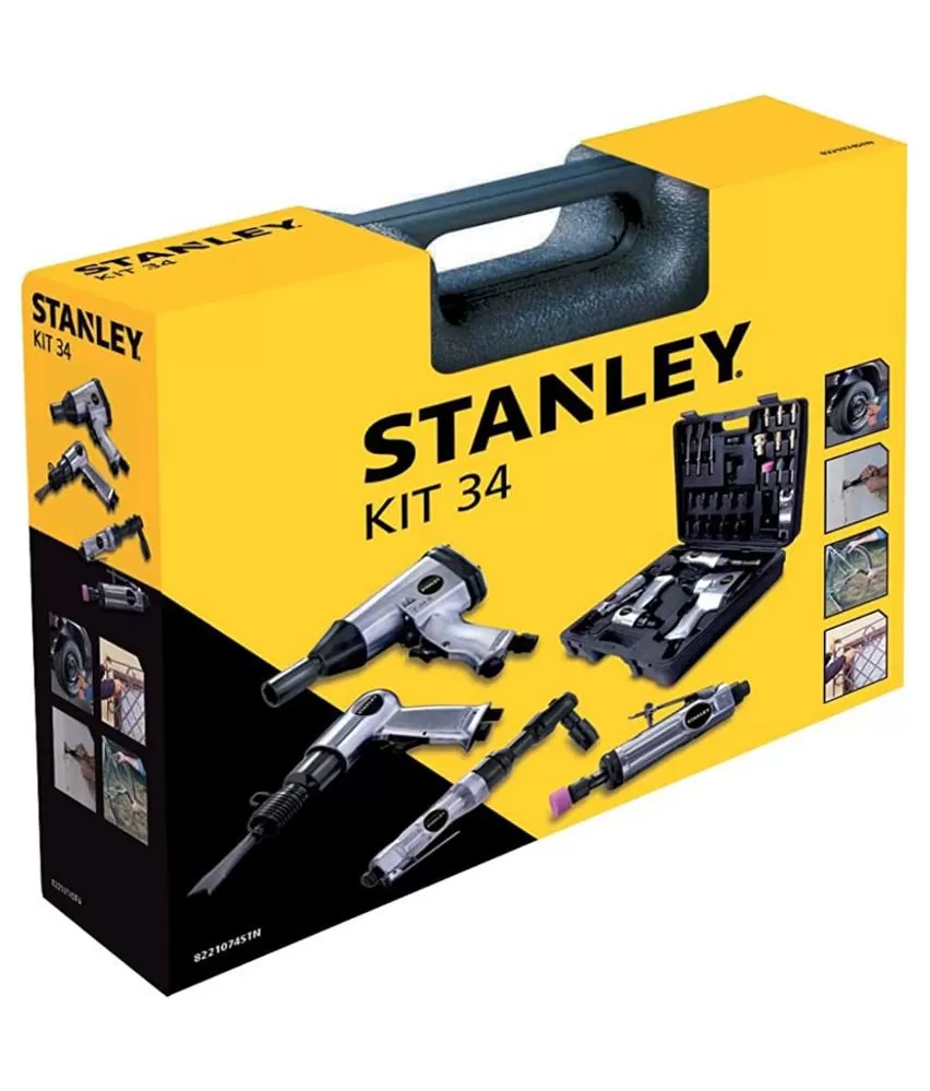 Sada pneu nářadí - 1/2" utahovák, ráčna, kladivo, přímá bruska Stanley 8221074STN