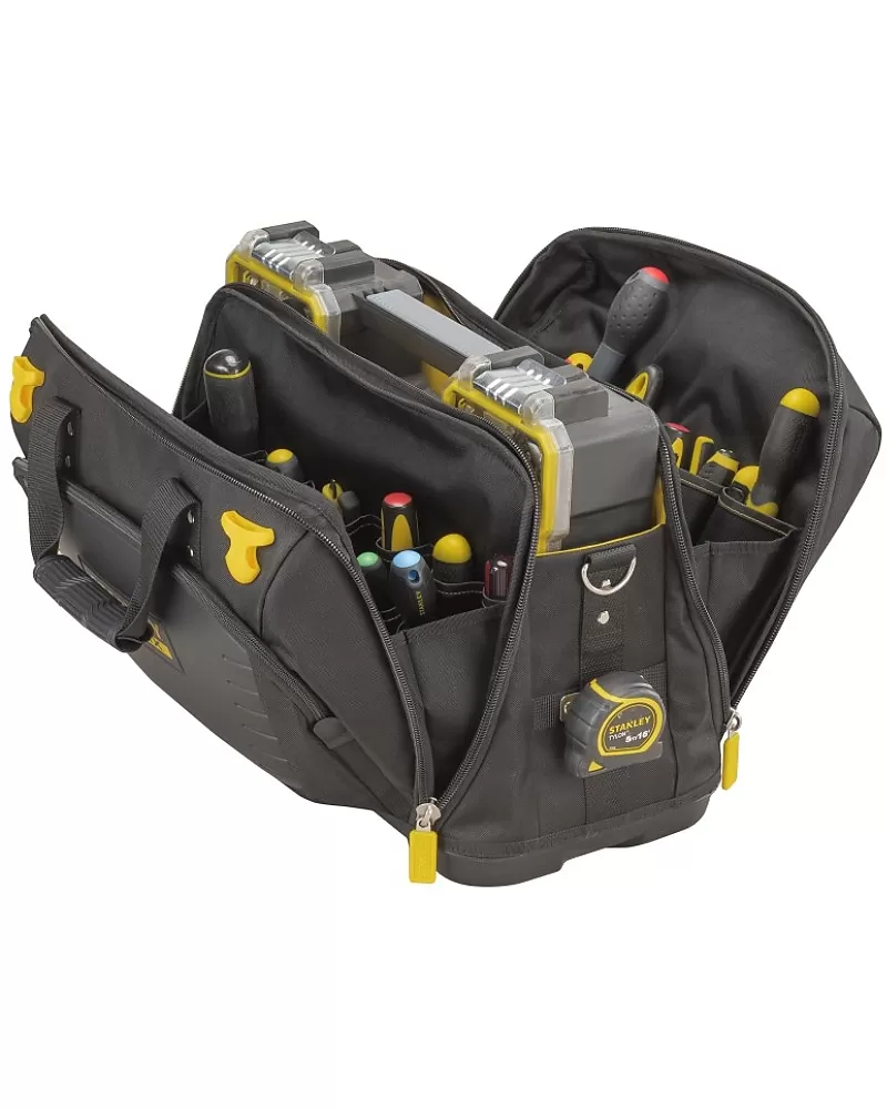 Batoh na nářadí STANLEY FatMax 1-95-611 Vyroben z pevné a odolné tkaniny s hustotou 600 vláken 50 přihrádek a kapes pro snadnou orientaci v uloženém nářadí Vstřikované polypropylenové dno chrání obsah před vlhkostí a nečistotami ...