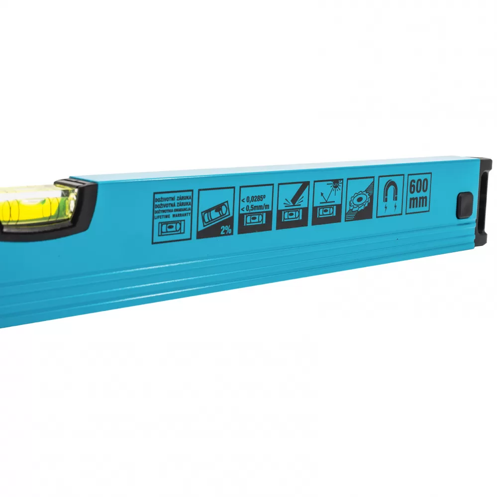 • Libely jsou pevně usazeny v hliníkovém těle tak, aby byla zaručena kalibrovaná přesnost po celou dobu životnosti vodováhy a to i v extrémních teplotních změnách a tvrdém zacházení na stavbě