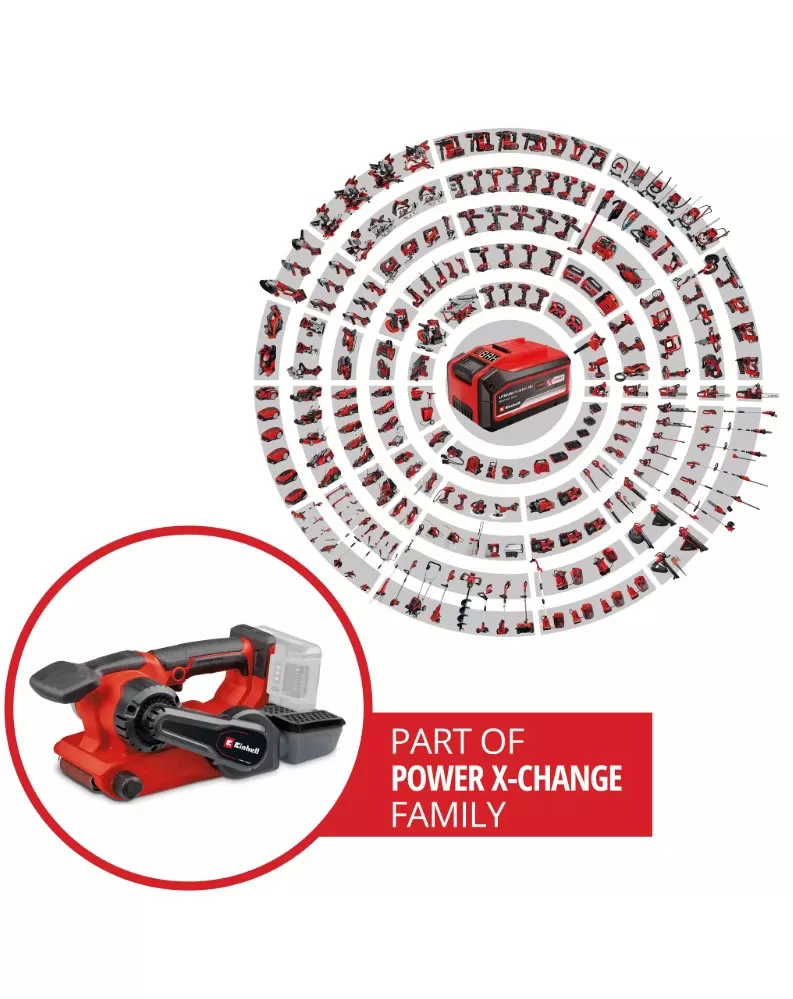 Bruska pásová aku TP-BS 18/457 Li BL Einhell je nepostradatelným nástrojem pro každou hobby dílnu, kde se pracuje se dřevem. Broušení velkých ploch rychle, rovnoměrně a s co nejmenší námahou - k tomu je akumulátorová pásová bruska jako stvořená. Jako dalšího člena řady Power X-Change lze kombinovat se všemi akumulátory a nabíječkami systémové řady. Pásová bruska zvládne během okamžiku brousit velké plochy díky 126 mm dlouhé a 75 mm široké brusné ploše a maximální rychlosti brusného pásu 250 m/min. Nářadí je poháněno bezuhlíkovým motorem Einhell PurePOWER. Tento bezuhlíkový motor nabízí vyšší výkon a delší dobu provozu než běžné motory s uhlíkovými kartáči. Na bezuhlíkový motor je po online registraci poskytována 10letá záruka. Díky snadné regulaci otáček se výkon dokonale přizpůsobí zpracovávanému materiálu. Aretace nepřetržitého chodu urychluje jinak časově náročnou práci. Pro pohodlnou manipulaci je akumulátorová pásová bruska vybavena velkou rukojetí a přídavnou rukojetí s měkkým držadlem. Díky integrované odkládací ploše lze nářadí používat i ve stacionárním stavu. Odsávání prachu ve spojení s dodávaným boxem na zachytávání prachu zajišťuje, že pracoviště zůstane bez dřevního prachu. Alternativně lze k odsávacímu adaptéru připojit odsávací zařízení, jako jsou mokro-suché vysavače Einhell. Pásovou brusku lze používat s brusnými pásy 457x75 mm. Pro okamžité zahájení projektu je součástí dodávky 3x brusný pás P80. Brusný papír se snadno vyměňuje a nastavuje díky beznástrojovému nastavení napětí brusného pásu pomocí aretační páky a přesnému nastavení brusného pásu. Baterie a nabíječka nejsou součástí dodávky. Jsou však k dispozici samostatně, například jako praktická startovací sada.