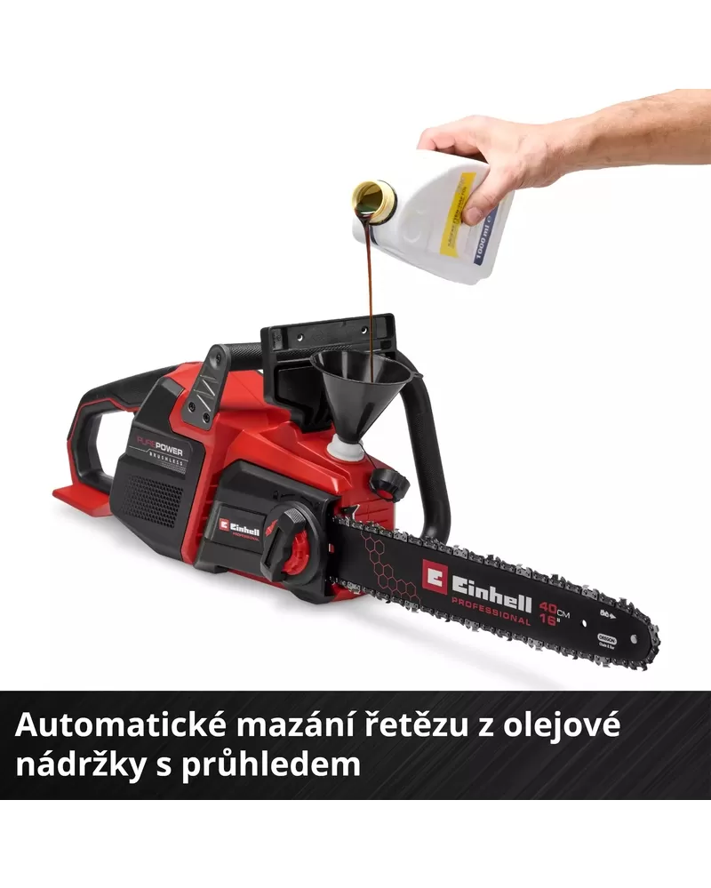 • Řetěz je nepřetržitě a automaticky mazán z olejové nádržky o objemu 230 ml.