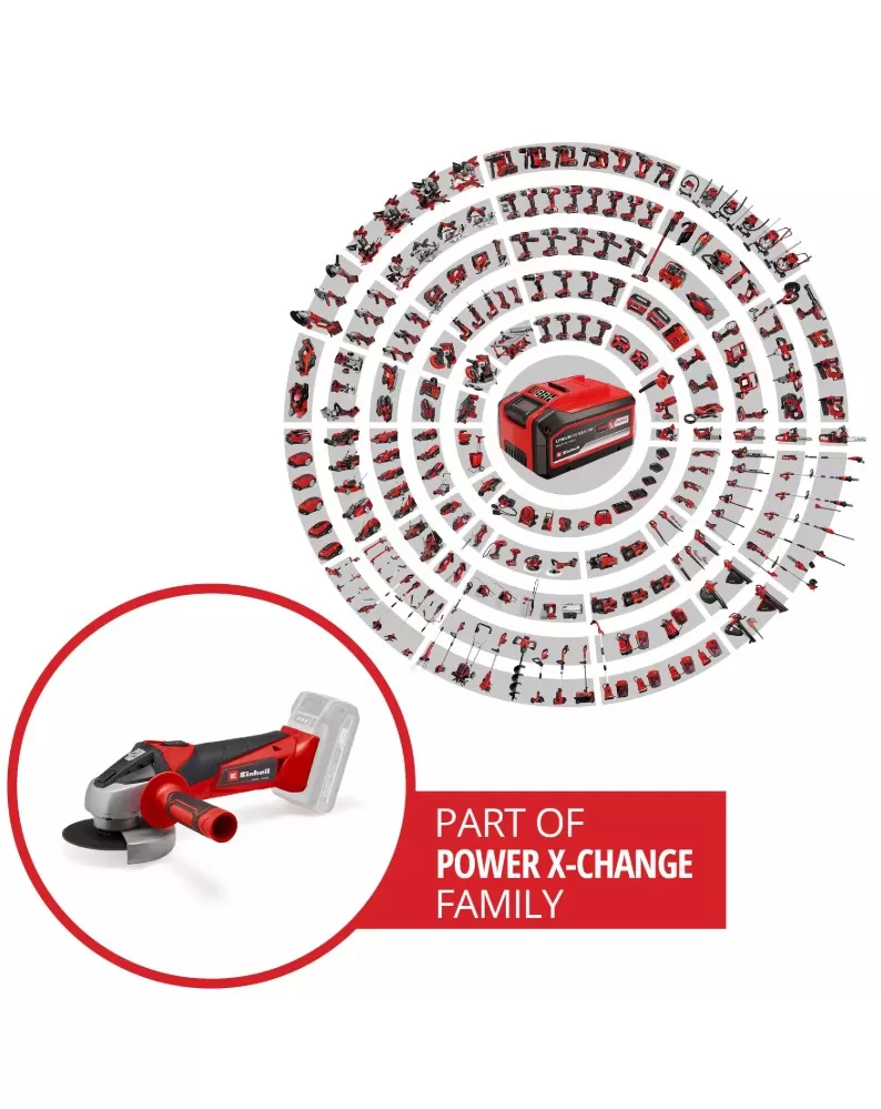 • Akumulátorová úhlová bruska Einhell TC-AG 18/115 Li – Solo představuje nejlehčí nástroj ve své třídě a nabízí tak pohodlné používání