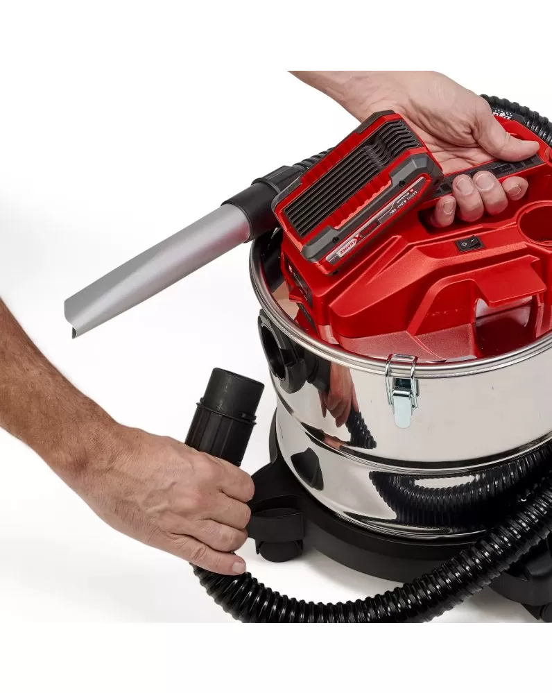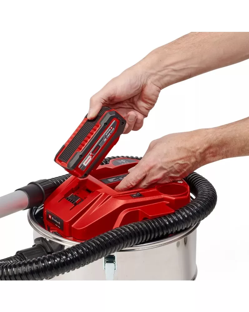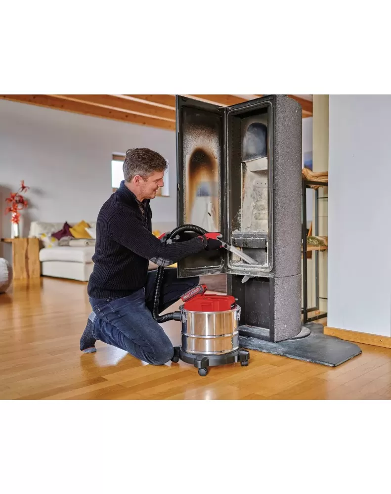 • Akumulátorový vysavač popela Einhell TE-AV 18/15 Li C-Solo jako člen rodiny Power X-Change zajistí čistotu v kachlových kamnech, kamnech na dřevo nebo i na grilu