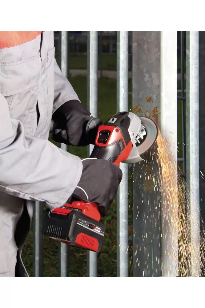 Akumulátorová úhlová bruska Einhell TE-AG 18/115 Li - Solo je nejlehčí úhlová bruska ve své třídě a má robustní hliníkový kryt s převodovkou. Je členem rodiny Power X-Change, takže baterie s vysoce kvalitními lithium-iontovými články lze použít pro všechna zařízení rodiny Power X-Change. Akumulátor a nabíječka jsou k dispozici samostatně, například jako vysoce výkonná startovací sada. Pro dosažení optimálních výsledků při řezání, broušení a hrubování se doporučuje používat akumulátor kapacitou 2,5 Ah nebo vyšší. Díky funkci pozvolného startu a pojistce opětovného spuštění se úhlová bruska rozbíhá plynule a její používání je bezpečnější. Díky štíhlému designu s ergonomickou měkkou rukojetí a přídavné rukojeti, kterou lze nasadit do tří dostupných poloh, nabízí nářadí pohodlnou manipulaci. Upravené vedení vzduchu zajišťuje optimální chlazení nářadí a nízké namáhání převodů při práci. Ochranný kryt kotouče je vybaven rychloupínacím zařízením, které lze pouhým otočením ruky přizpůsobit jakémukoli úkolu. K větší bezpečnosti a delší životnosti přispívá pojistka proti přetížení. Dodává se bez řezného kotouče.