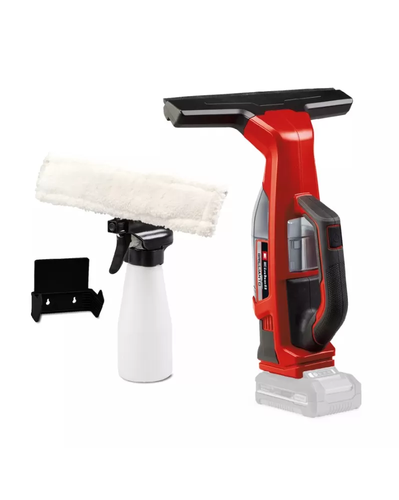 Okna beze šmouh během okamžiku – s akumulátorovým čističem oken Einhell BRILLIANTO je bezchybný výsledek jistotou. Čistič je součástí rodiny Power X-Change a lze jej kombinovat se všemi systémovými bateriemi a nabíječkami. Bezdrátové čištění oken bez zbytečných prodlev: umožňuje to systém výměnných baterií Power X-Change a technologie vysokorychlostního nabíjení. Pokud je používaná baterie vybitá, lze ji snadno vyměnit za plně nabitou a doba provozu tak není nijak omezena. Akumulátorový čistič oken BRILLIANTO se dodává s 300 ml lahvičkou s rozprašovačem. Součástí balení je pak i kvalitní podložka z mikrovlákna pro snadné čištění skleněných povrchů. Zbytky vody a nečistoty sbírá zařízení pomocí 28 cm dlouhé sací hubice. Dokonalá souhra mezi tryskou a gumovou stěrkou zajišťuje bezchybné výsledky beze šmouh – bez ohledu na to, zda jsou skleněné povrchy čištěny v horizontálním, vertikálním nebo diagonálním směru. Díky tomu je akumulátorový čistič oken opravdu všestranný – používá se nejen k mytí oken, ale také k čištění dlaždic, sprch, skleněných stolků, oken v autě nebo výloh. Nádržka na znečištěnou vodu má objem 100 ml a lze ji zcela vyjmout a pohodlně vyprázdnit a vyčistit. Díky lehké a kompaktní konstrukci se speciálními povrchy Softgrip padne čistič oken pohodlně do ruky, aniž by klouzal. Spínač je vybaven funkcí nepřetržitého chodu pro časově náročné úklidové práce. Akumulátorový čistič oken lze uložit v dodávaném nástěnném držáku jednoduchým a prostorově úsporným způsobem. BRILLIANTO se dodává bez baterie nebo nabíječky. Ty jsou k dispozici samostatně, např. jako praktický startovací set. Sada teleskopických tyčí pro čištění špatně dostupných oken a sada trysek pro čištění úzkých a velkých skleněných ploch jsou k dispozici samostatně jako praktické příslušenství.