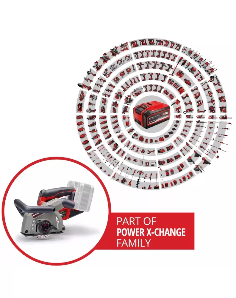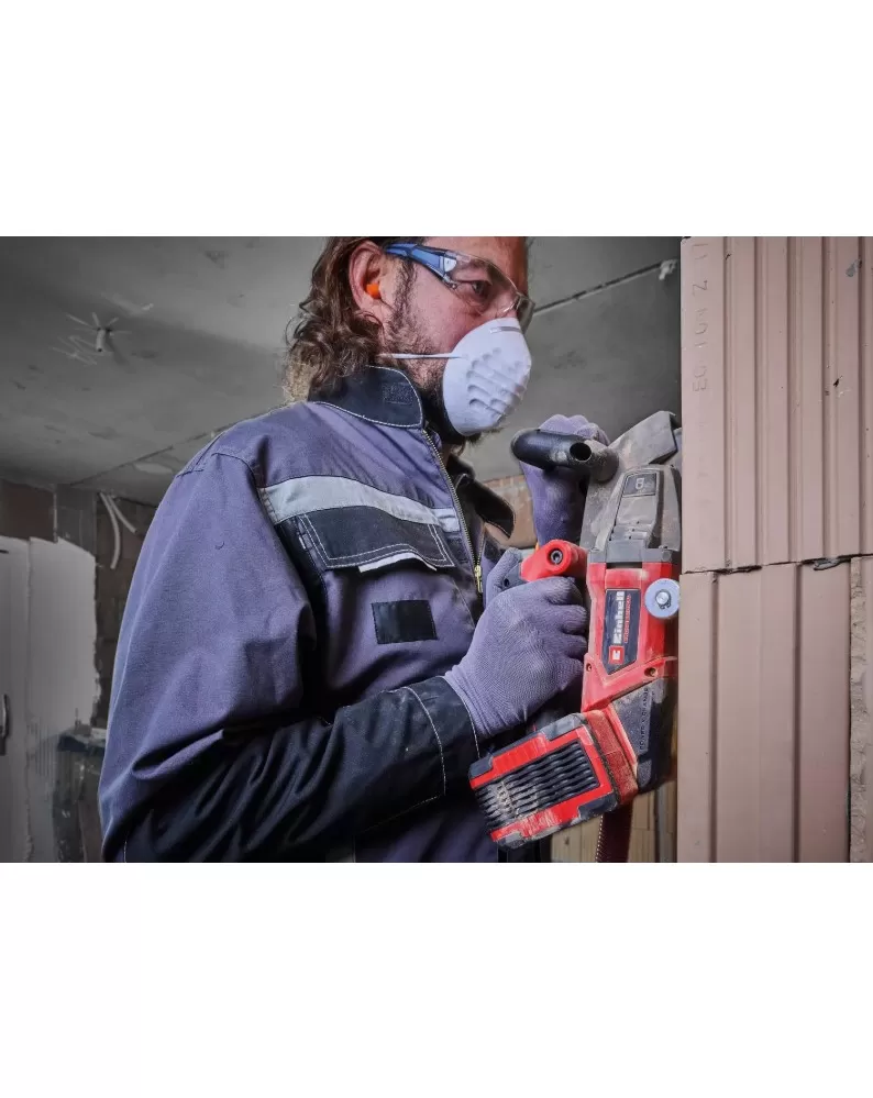 Einhell Professional Aku řezačka stěn TP-MA 36/30 Li BL - Solo vyřezává do zdiva vodorovné a svislé drážky a kanály pro potrubí, kanály atd. - bez problémů s kabely. Tato řezačka stěn je součástí výkonné a flexibilní řady Power X-Change a pro provoz vyžaduje dvě baterie 18 V. Přístroj je poháněn bezuhlíkovým motorem Einhell Purepower. Tento bezuhlíkový motor nabízí vyšší výkon a delší dobu provozu než běžné motory s uhlíkovými kartáči. Po online registraci se na bezuhlíkový motor vztahuje 10letá záruka. Pomocí dvou paralelních řezných kotoučů Ø 125 mm (vrtání Ø 22,2 mm) vytváří přesné řezy nebo drážky ve zdivu. Plynule nastavitelné nastavení hloubky drážky a individuálně nastavitelná šířka řezu až do maximálně 30 mm nabízejí působivou flexibilitu pro vytvoření úzkých nebo širokých drážek. Pozvolný start a přerušení tahu zajišťují bezpečný provoz. Ochrana proti přetížení pomáhá zajistit trvanlivost nástroje, zatímco ochranný kryt řezného kotouče chrání uživatele. Vodicí váleček a pomocná rukojeť zvyšují pohodlí při manipulaci tím, že poskytují pevný a bezpečný úchop. Značka ukazující polohu řezných kotoučů umožňuje přesné umístění nástroje pro zajištění rozměrově přesných řezů. Stěnový chaser je také vybaven Aretace vřetena, který usnadňuje výměnu disku pomocí šestihranného nástrčného klíče. Odsávací adaptér znamená, že je kompatibilní s mokrými/suchými vysavači Einhell. Dodává se s úložným pouzdrem pro čisté a bezpečné přepravování, stejně jako se čtyřmi diamantovými řeznými kotouči, takže můžete začít svůj projekt hned. Baterie a nabíječka jsou k dispozici samostatně. Ty jsou k dispozici samostatně.