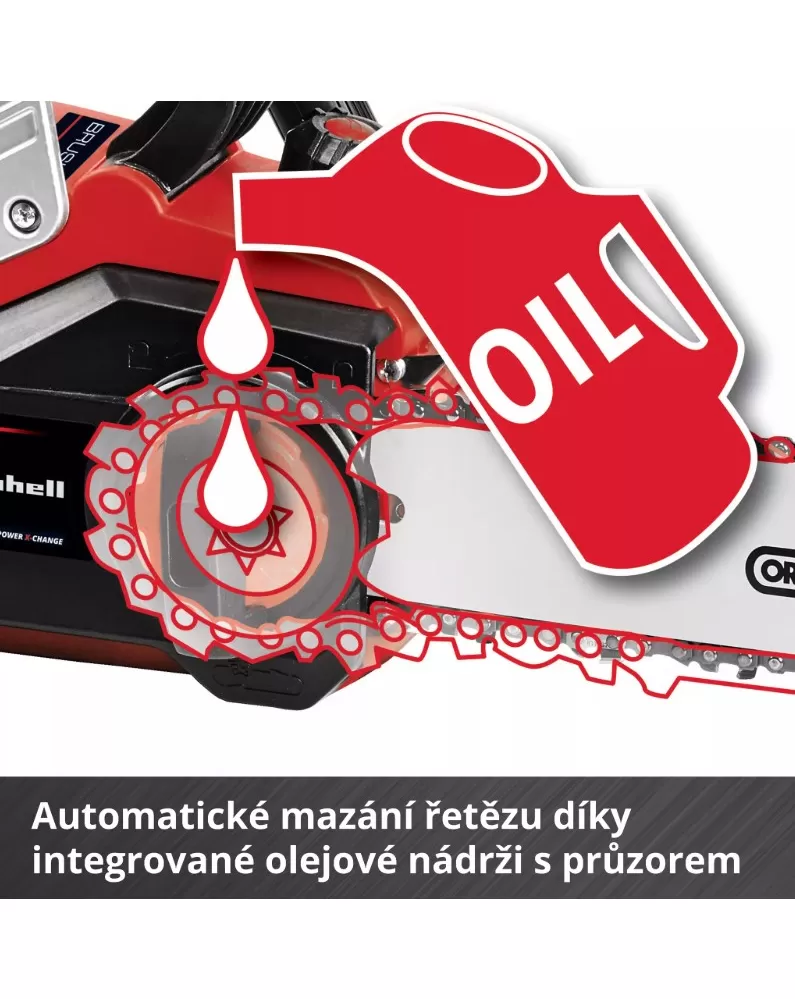 Řetěz je při použití zcela automaticky mazán z integrované nádržky. Tím je zajištěn maximální životní cyklus meče a řetězu.
