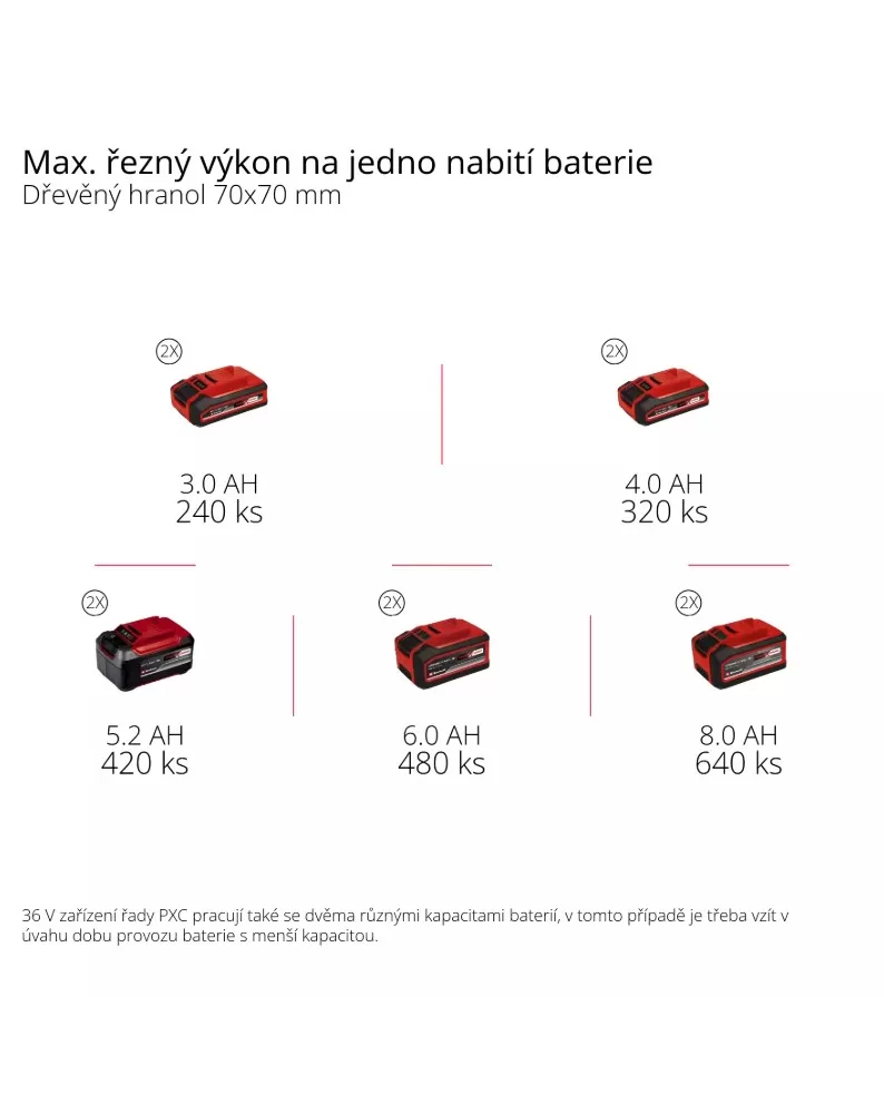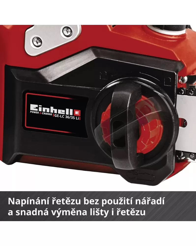 Akumulátorová řetězová pila Einhell GP-LC 36/35 Li-Solo se vyznačuje působivými vlastnostmi: flexibilitou, výkonem a uživatelskou přívětivostí. Jako člen rodiny Power X-Change je řetězová pila napájena dvěma vysoce výkonnými 18V akumulátory a poháněna bezkartáčovým motorem Einhell, tedy bezkartáčovým elektromotorem - daleko od nejbližší zásuvky. Akumulátorová řetězová pila má navíc kvalitní vodicí lištu a řetěz OREGON, délku řezné lišty 350 milimetrů a rychlost řezání 15 m/s, takže prořeže i větší kmeny. Řetěz lze vyměnit a nastavit jeho napnutí bez nutnosti použití jakéhokoli dalšího nářadí. Robustní doraz drápu je vyroben z kovu. Pro větší bezpečnost je k dispozici ochrana proti zpětnému rázu, brzda řetězu s okamžitou reakcí a záchytný šroub řetězu. Díky ergonomické rukojeti s měkkým držadlem se s ní pohodlně pracuje i při delší práci a při práci s tvrdým materiálem. Mazání řetězu je automatické. V olejové nádrži je velký otvor pro doplňování oleje. Nádržka na olej má objem 120 ml. Tento výrobek se dodává bez akumulátoru a nabíječky. Ty jsou k dispozici samostatně, například jako praktická startovací sada PXC v různých výkonnostních stupních.