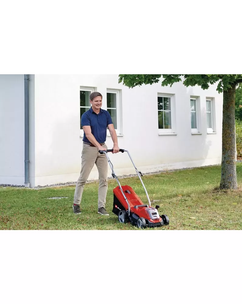 Akumulátorová sekačka na trávu Einhell GE-CM 18/33 Li-Solo je členem flexibilní a inovativní rodiny Power X-Change a je doporučována až na plochu 200 m². Akumulátorová sekačka je napájena 18 V baterií 4,0 Ah z řady systémů PXC. Baterie a nabíječka jsou součástí dodávky. Baterie mají 3 LED diody jako indikátor úrovně a lze je kombinovat se všemi ostatními zařízeními v systémové řadě. Aku sekačka kolo je poháněno bezuhlíkovým motorem Einhell, má 5stupňové centrální nastavení výšky sečení, výškově nastavitelné rukojeť, sklopné řídítka a koš na trávu s indikátorem stavu naplnění. Sekačka je vybavena vysoce kvalitním plastovým pouzdrem odolným proti nárazu a integrovanou rukojetí. Dodáváno bez baterie a nabíječky, ty jsou k dispozici samostatně.