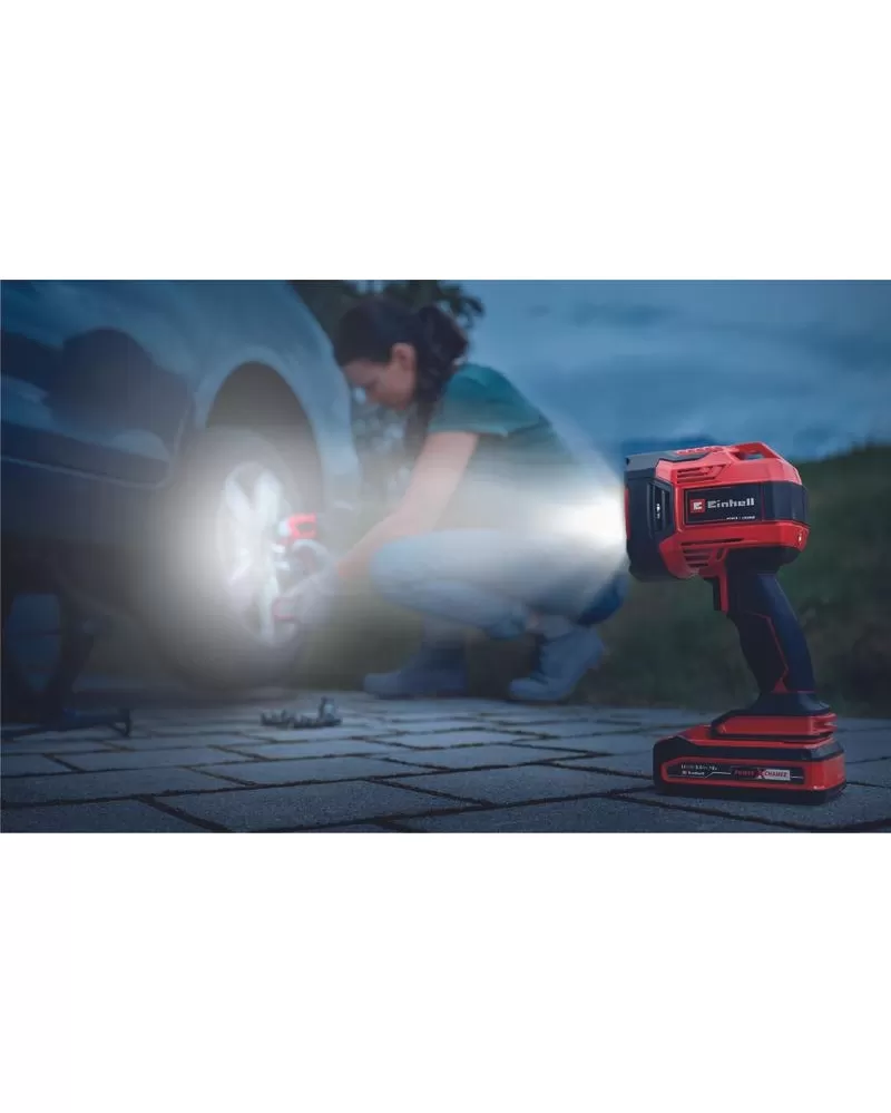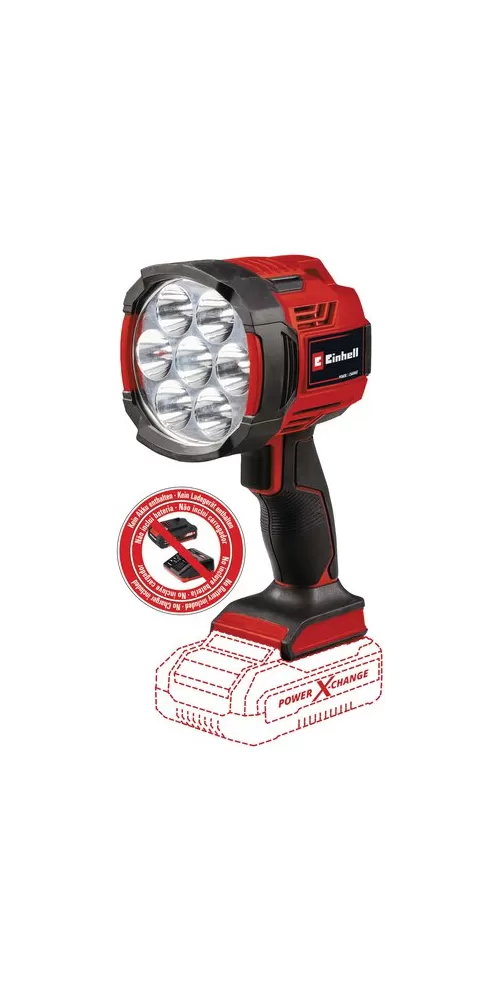 Einhell TE-CL 18/2500 LiAC - Samostatná nabíjateľná baterka s 2 500 lm skutočne premení tmu na deň. Ako člen rodiny Power-X-Change možno všetky nabíjateľné batérie z rodiny systému používať v kombinácii s baterkou.
