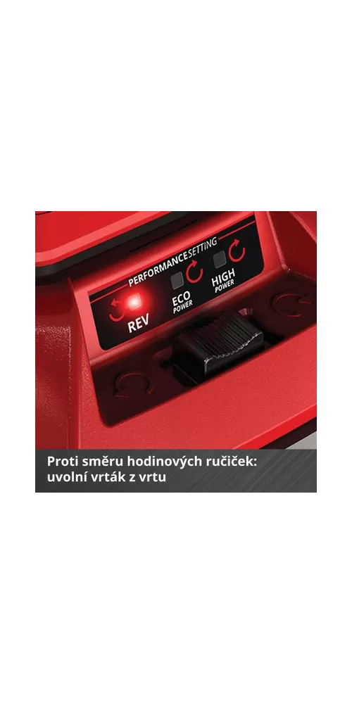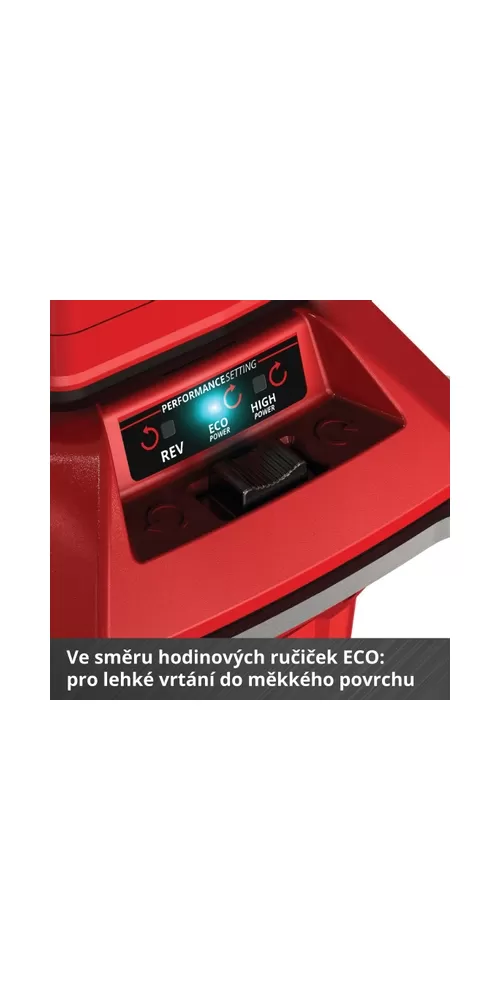 • Šnek je nastavitelný do tří různých režimů: 1) proti směru hodinových ručiček pro uvolnění vrtáku 2) ve směru hodinových ručiček v režimu ECO power.