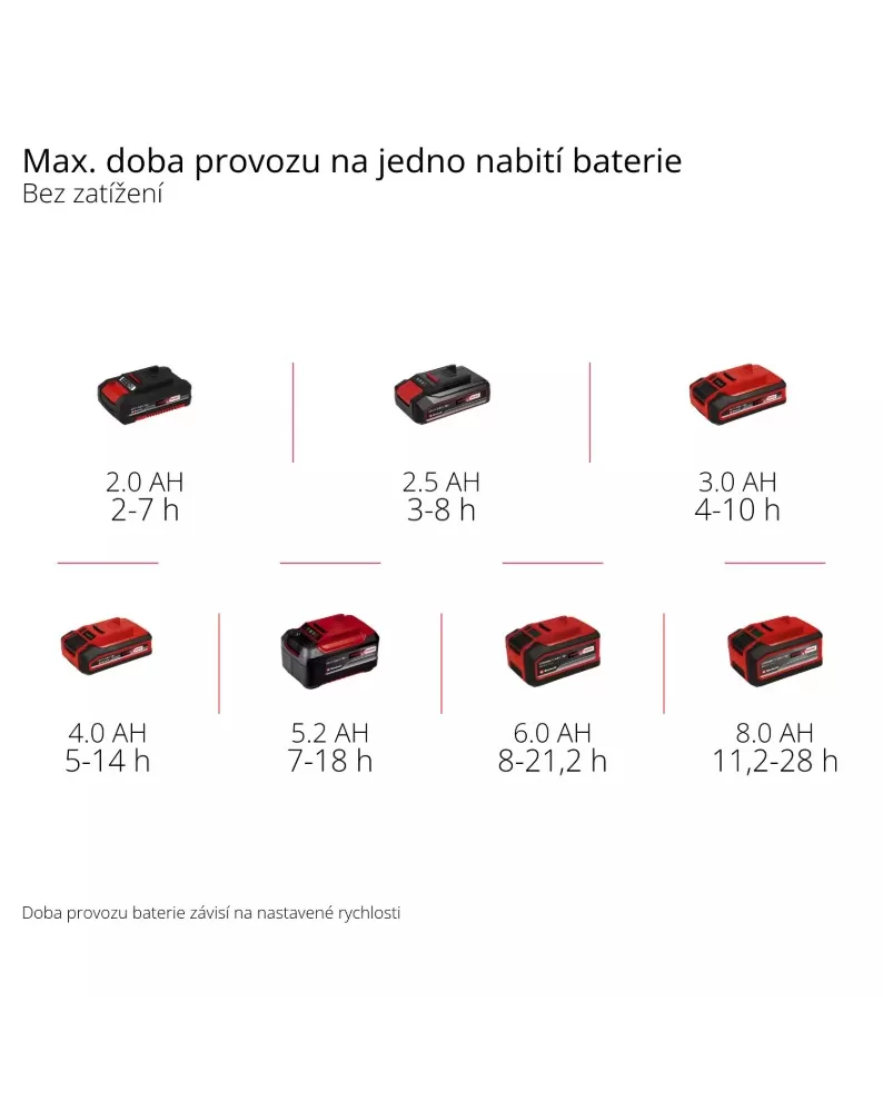 Einhell Aku ventilátor GE-CF 18/2200 Li poskytuje vítr kdekoli a kdykoli – zcela bez kabelů nebo zásuvek díky Power X-Change. V kombinaci s 5,2 Ah baterií jsou možné doby provozu až do 18 hodin. V závislosti na tom, jak silný vítr fouká, může být výkon ventilátoru regulován pomocí stupňů rychlosti. Díky tomu dosahuje kolo ventilátoru ve třech stupních buď 1 200, 1 700 nebo maximálně 2 200 otáček za minutu.