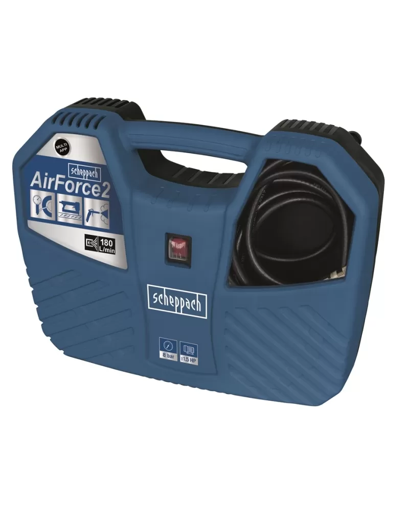 • Kompresor Scheppach AIR FORCE 2 je praktický, skladný, lehký, výkonný a bohatě vybavený pomocník vhodný do každé domácnosti, chaty, karavanu nebo lodě.