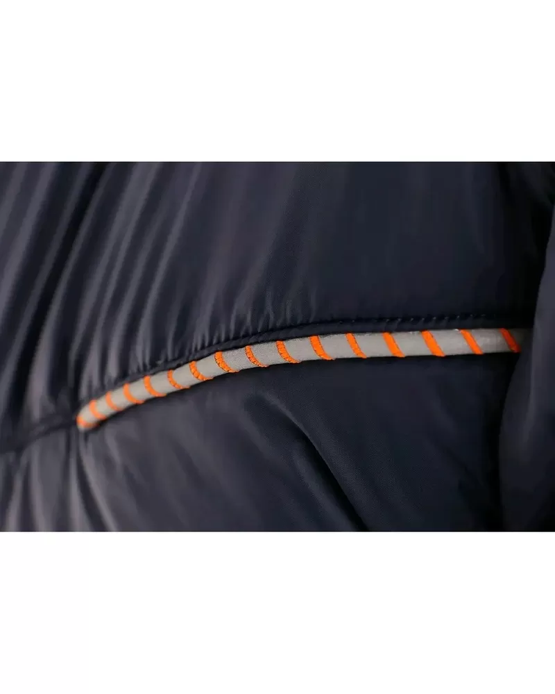 • Vnitřní strana bundy má náprsní kapsu na zip, boční kapsy na zip, kontrastní žluté/oranžové a reflexní doplňky.