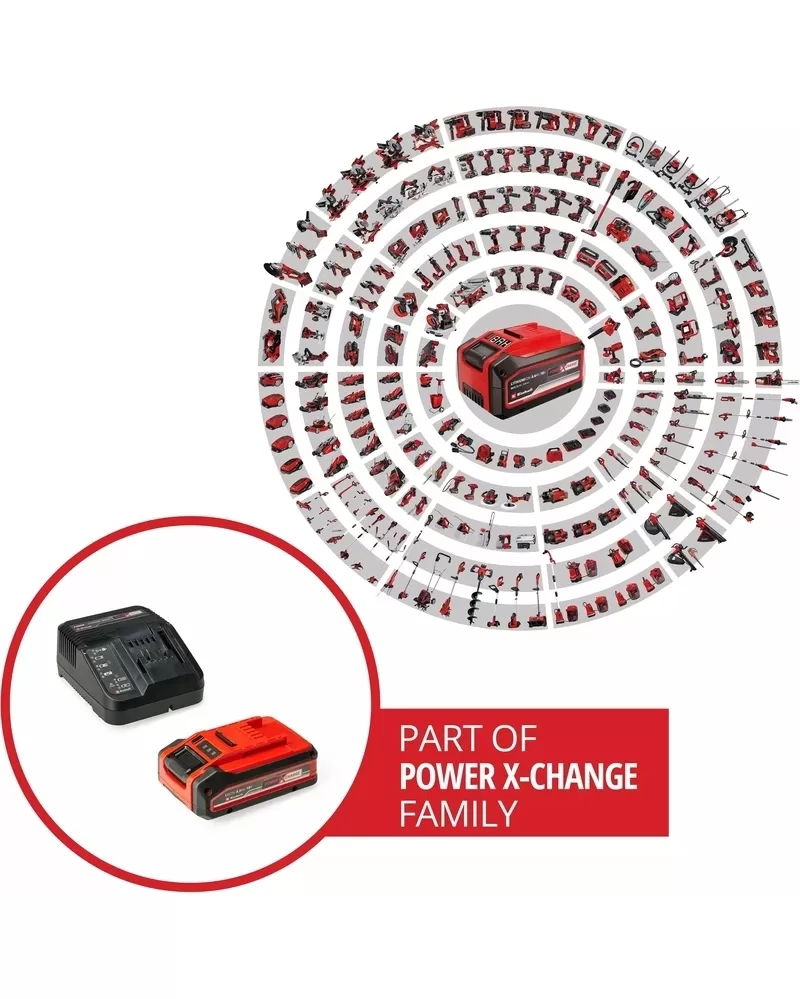 Méně článků, stejný výkon – to je technologie Einhell PLUS. Díky nejnovější technologii článků jsou akumulátory Power X-Change PLUS kompaktnější a lehčí. Nové lithium-iontové články mají dvojnásobný výkon oproti běžným článkům, a proto jich stačí méně. Výsledkem je menší a lehčí design, který zaujme nízkou hmotností a skvěle se osvědčí při práci se zařízeními Einhell Power X-Change.