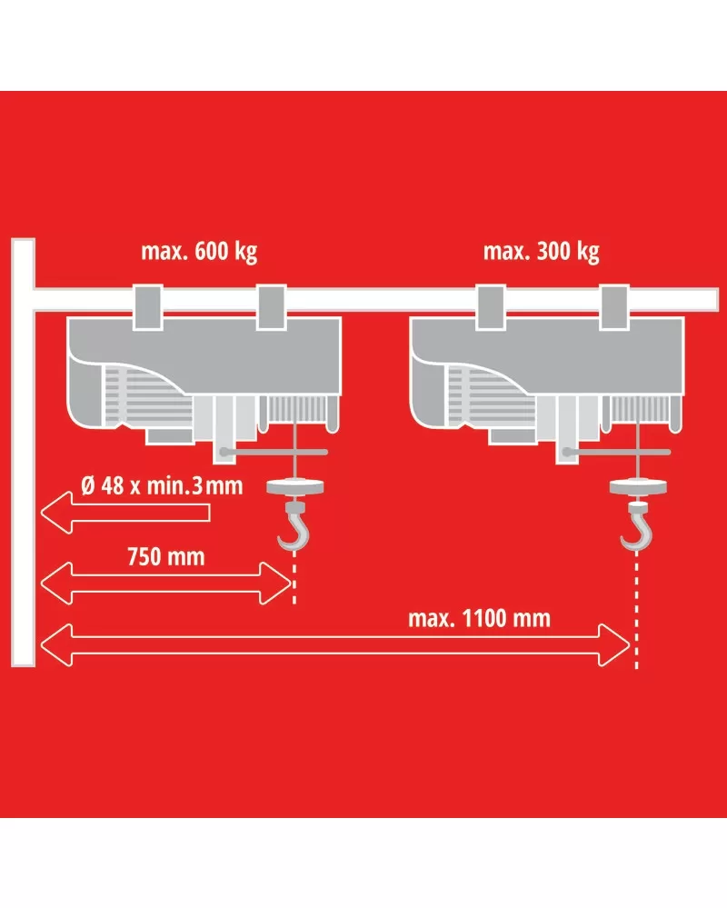 • Toto otočné rameno je z. B. kompatibilní s kladkostroji Einhell TC-EH 250, TC-EH 500 a TC-EH 600