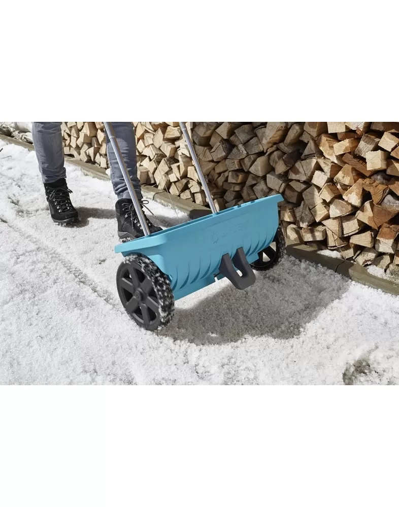 • Množství můžete regulovat na ergonomické rukojeti a praktická funkce otevření/zavření umožňuje přesné dávkování posypového materiálu - ve vzpřímené poloze bez ohýbání