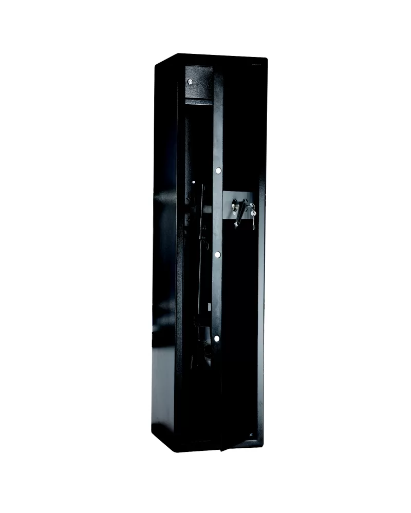 • Je v moderní černé barvě a má mechanický, snadno uzamykatelný zámek, který zajistí, že budete moct v noci klidně spát, protože vaše zbraně budou bezpečně uloženy a nedostanou se do nepovolaných rukou vašich dětí ani jiných osob.