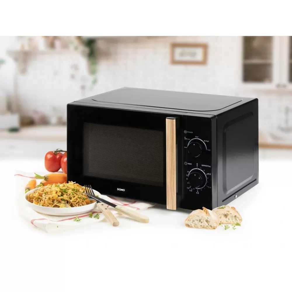 Mikrovlnná trouba DOMO DO2820 Mikrovlnná trouba s manuálním ovládáním v černé barvě s dřevěným dekorem na rukojeti. Velmi jednoduchá na ovládání a… Celý popis